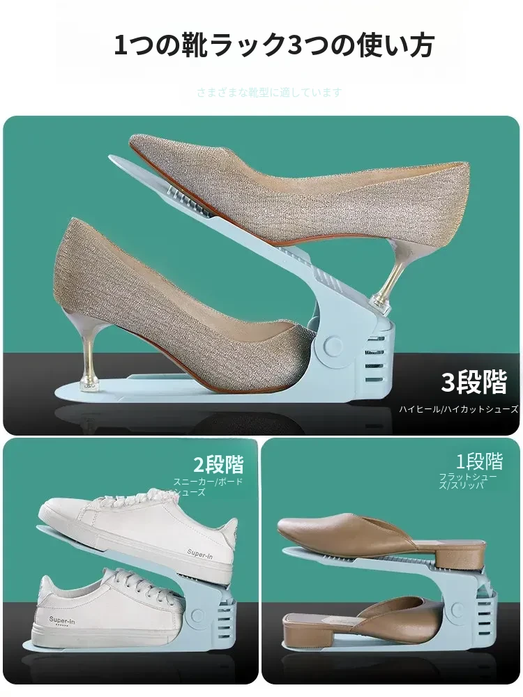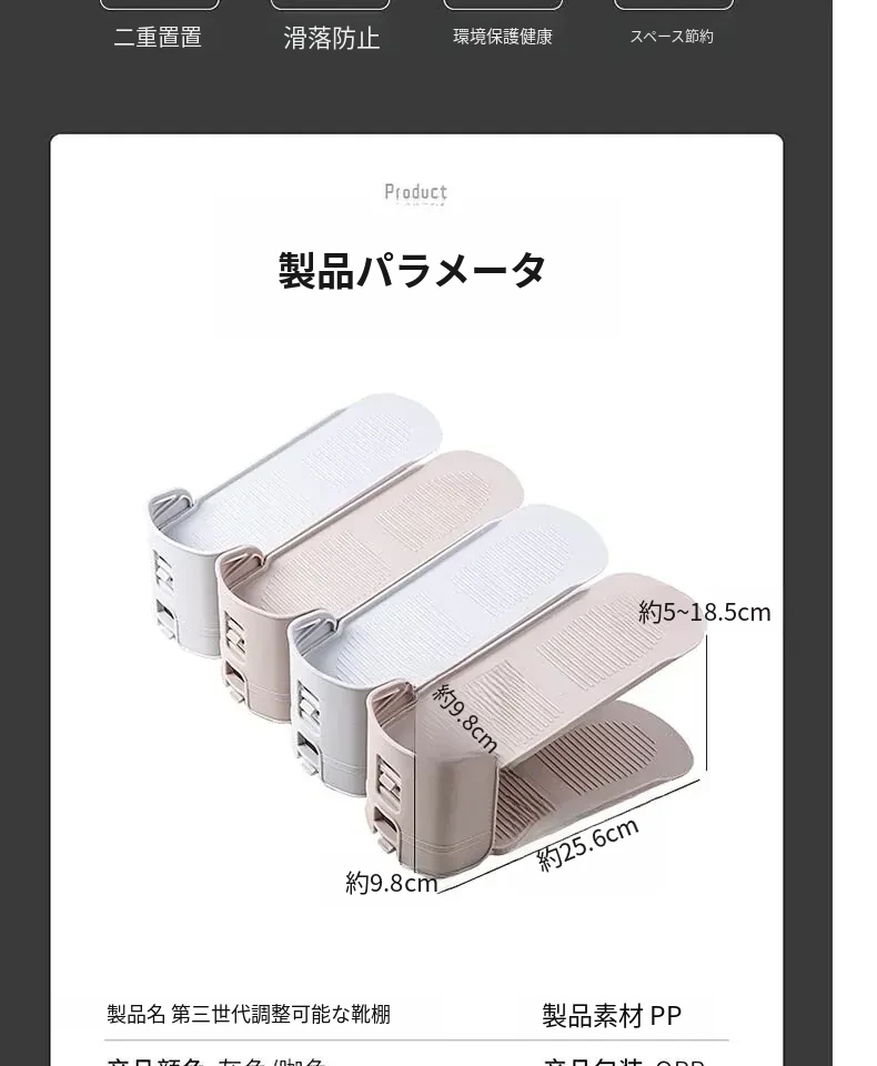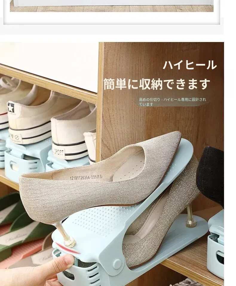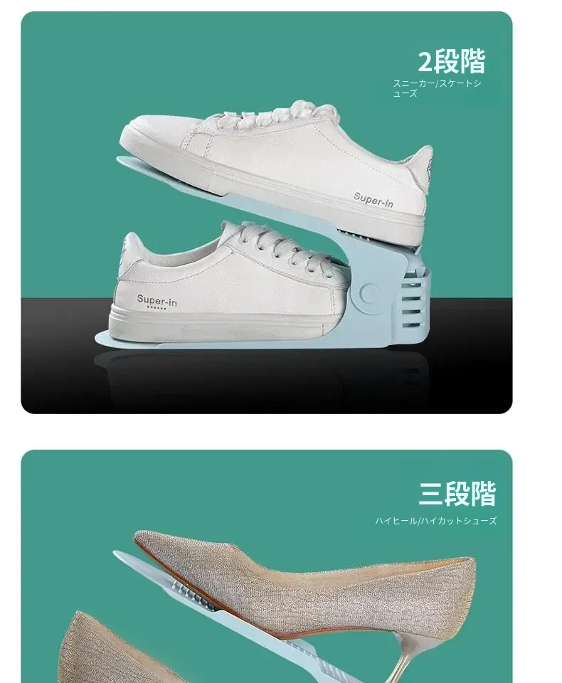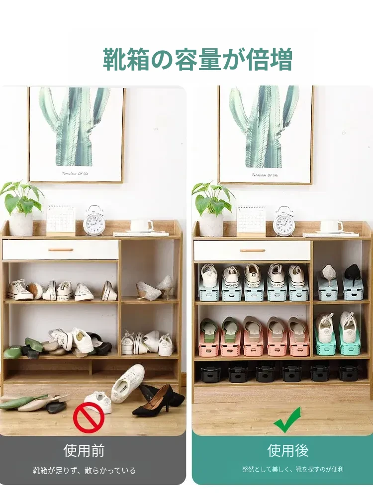 省スペースの二段シューズラック!宿舎やお部屋に最適な靴収納神器。整理整頓が簡単で、靴をスッキリと収納。あなたの生活空間を有効活用しましょう!