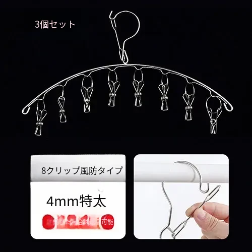 防風タイプ ステンレス製アーチ型8クリップ(3個セット)