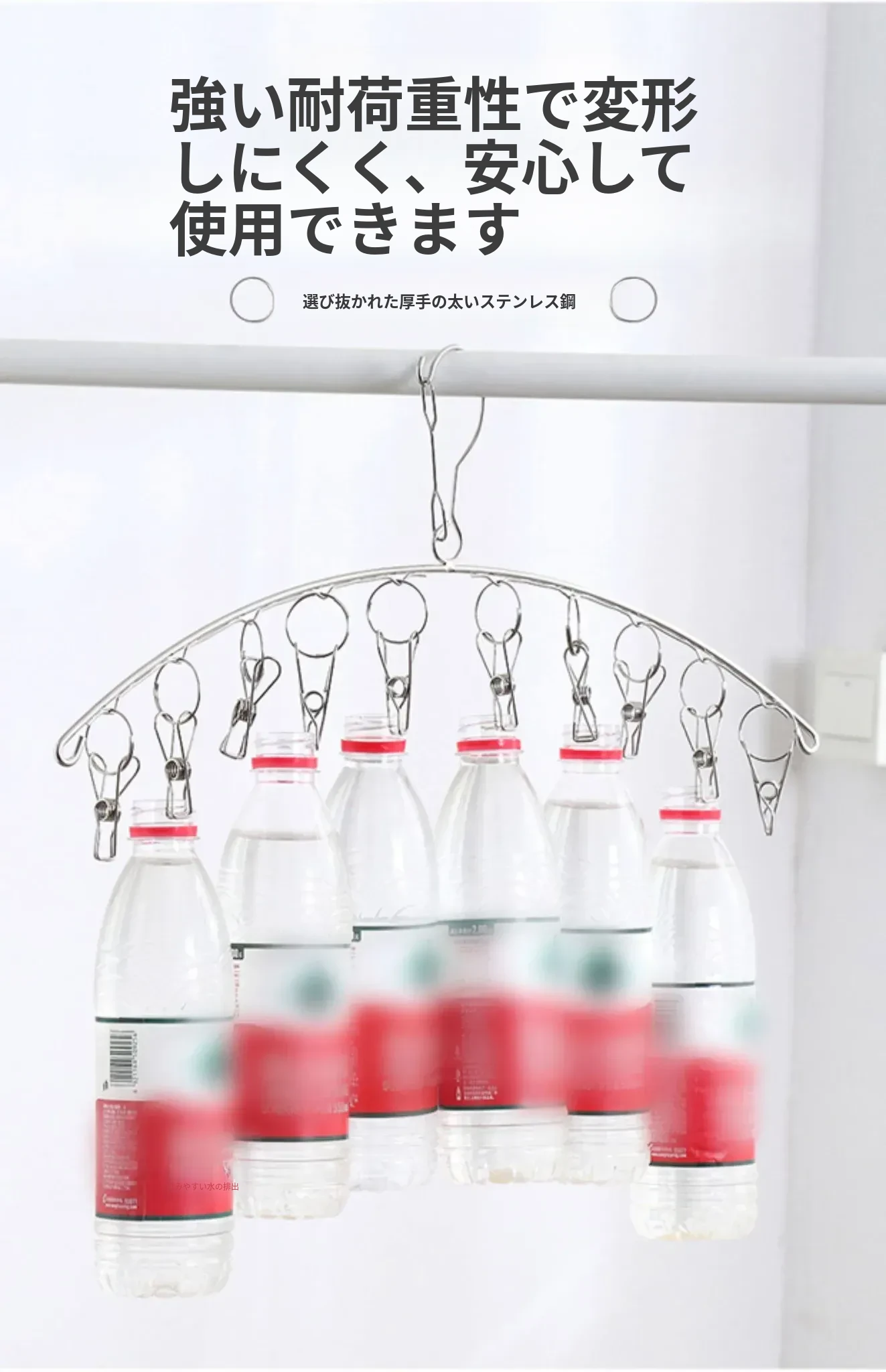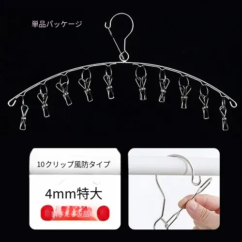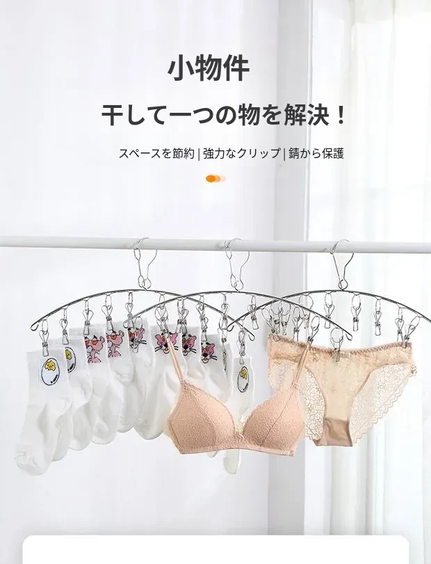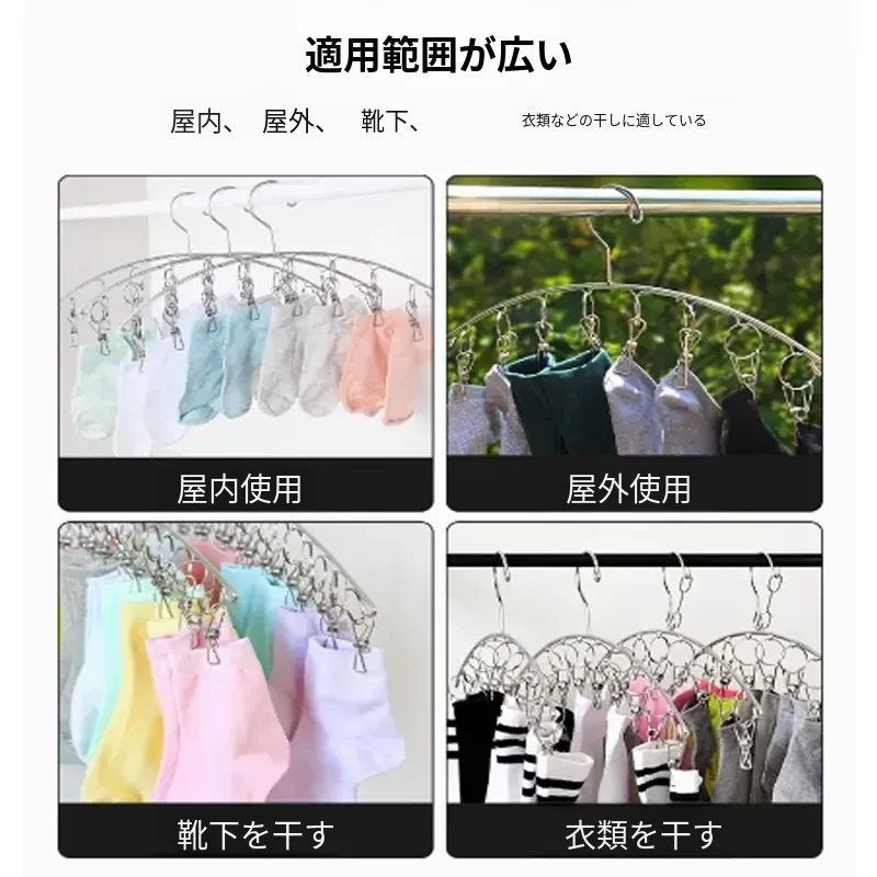 ステンレス製の靴下干しラック - 多機能クリップ付き、衣類も干せる便利なフック!家庭用ソックス干しの必須アイテムで、あなたの洗濯をもっと快適に!
