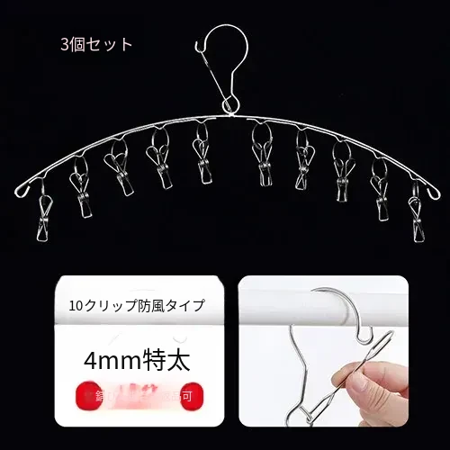 防風タイプ ステンレス製アーチ型10クリップ(3個セット)