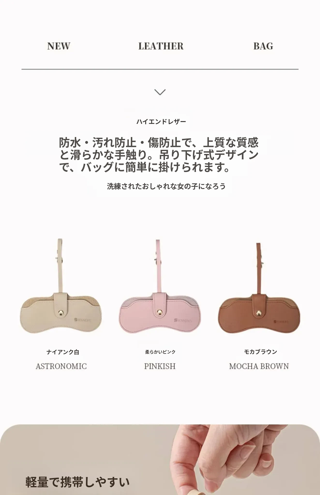 柔らかいピンク【携帯フックデザイン/ユニバーサルサイズ/ハイエンドレザー】