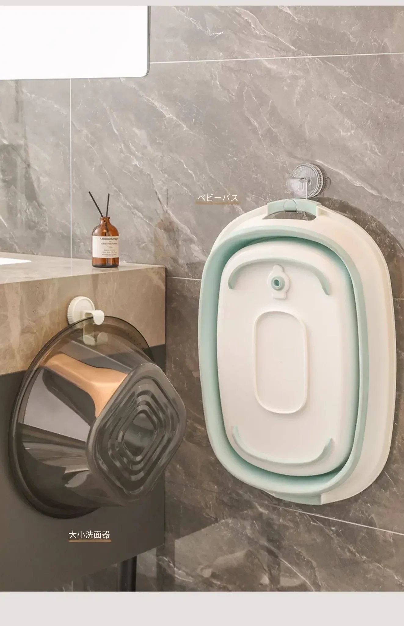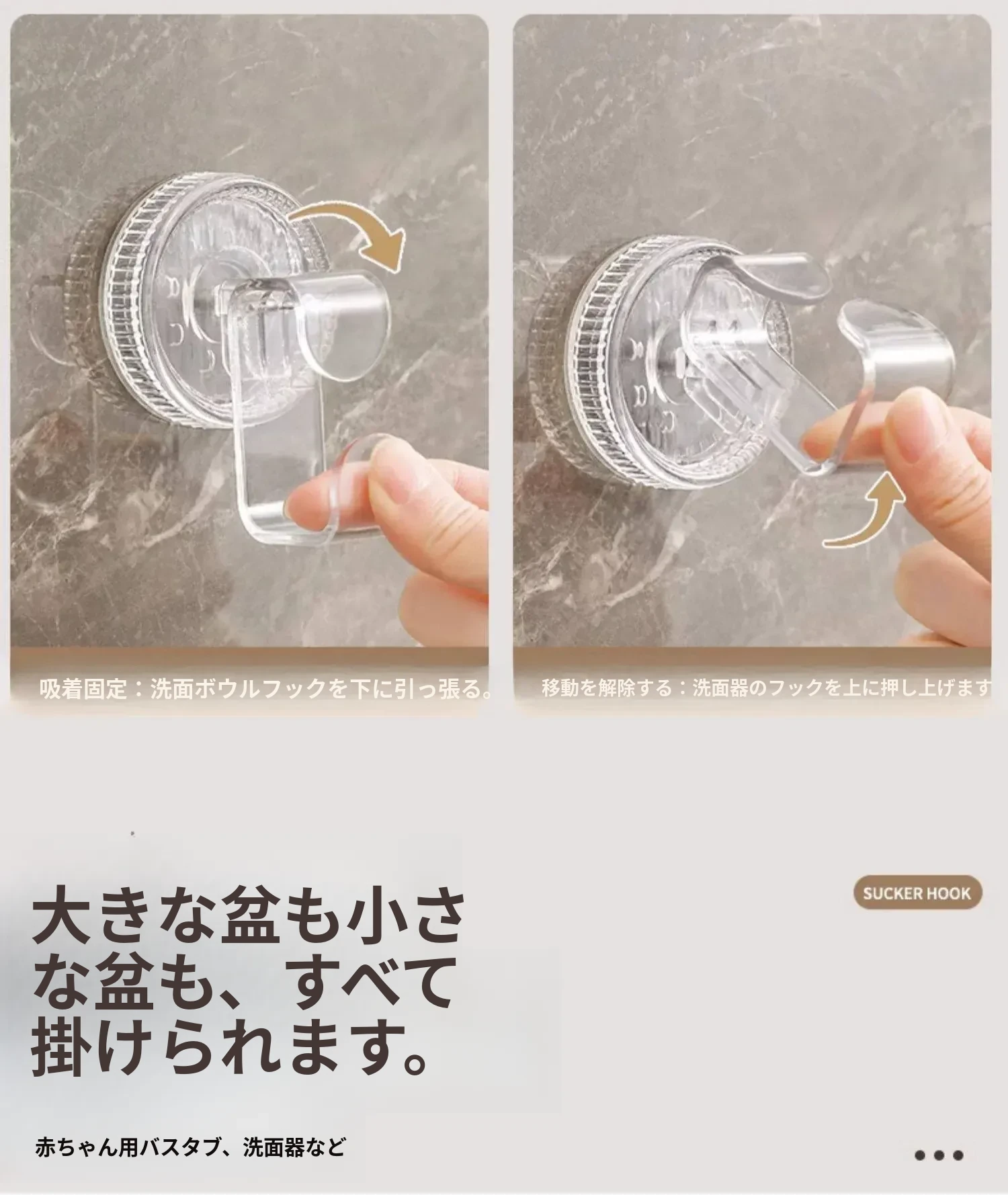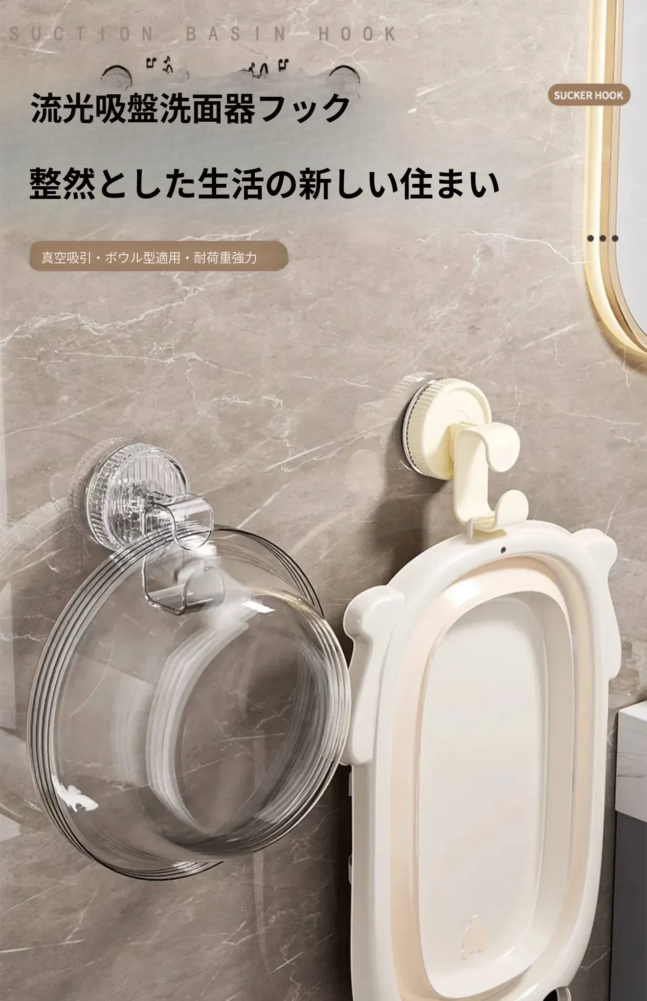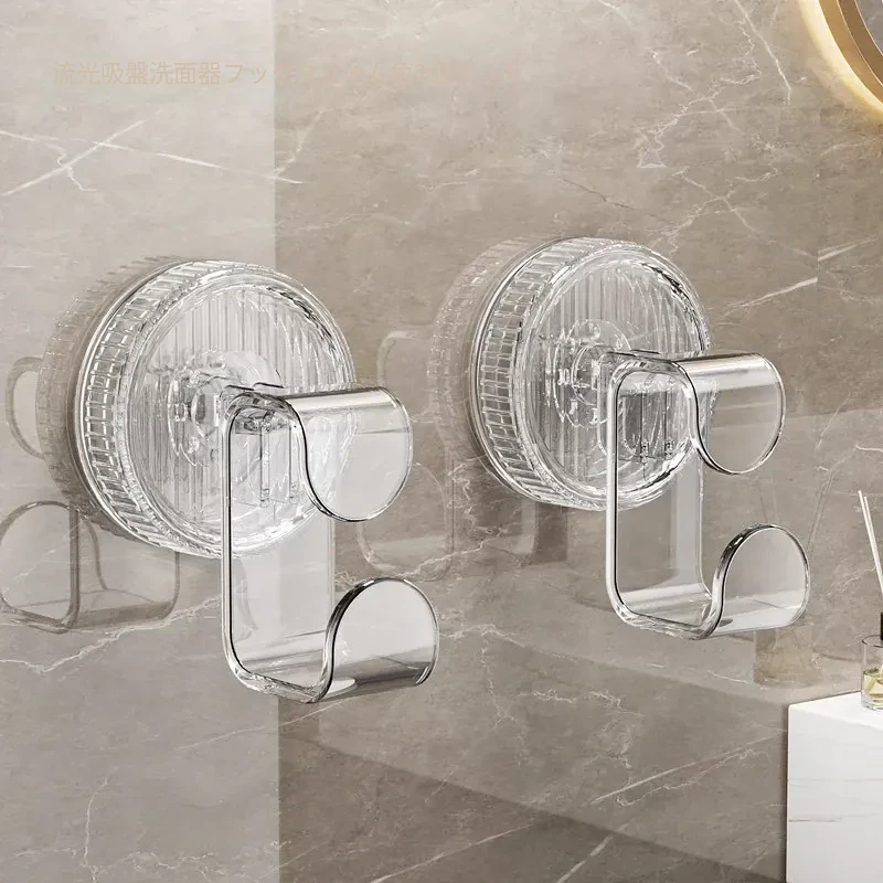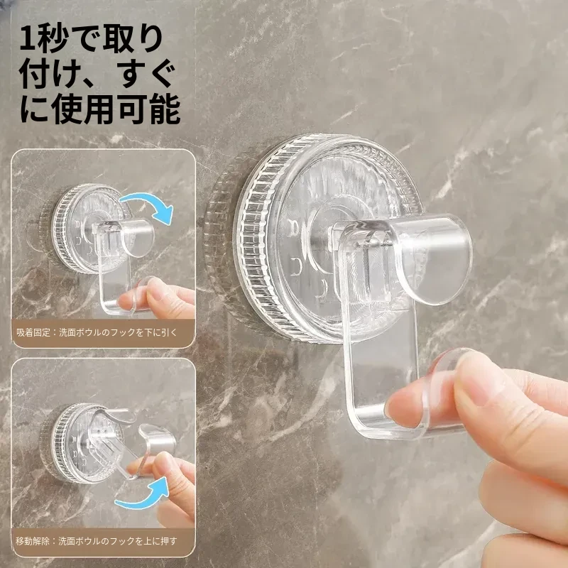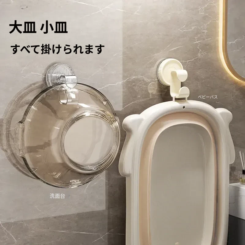 吸盤式洗面器フック - トイレやバスルームに最適!穴をあけずに取り付けられる壁掛け洗面器収納ラック、便利な洗面器整理アイテム!