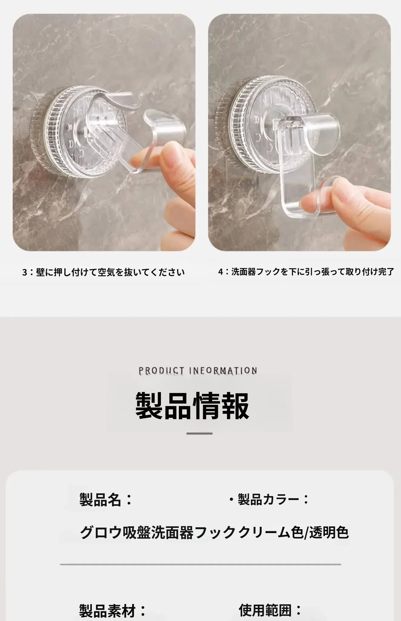 2個入り-透明色+クリーム色【真空吸着/再利用可能】