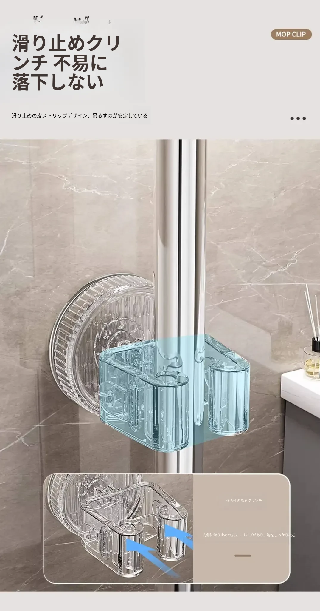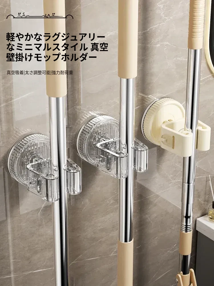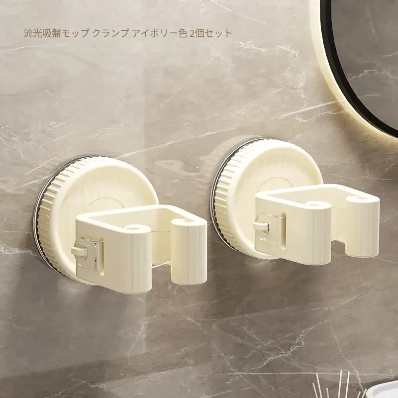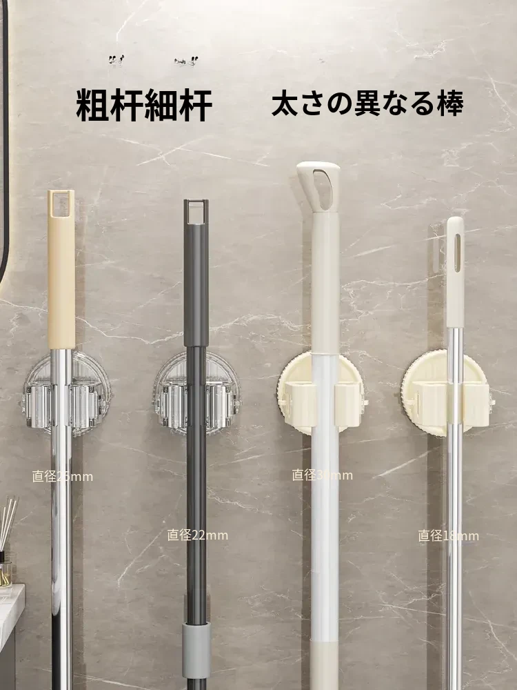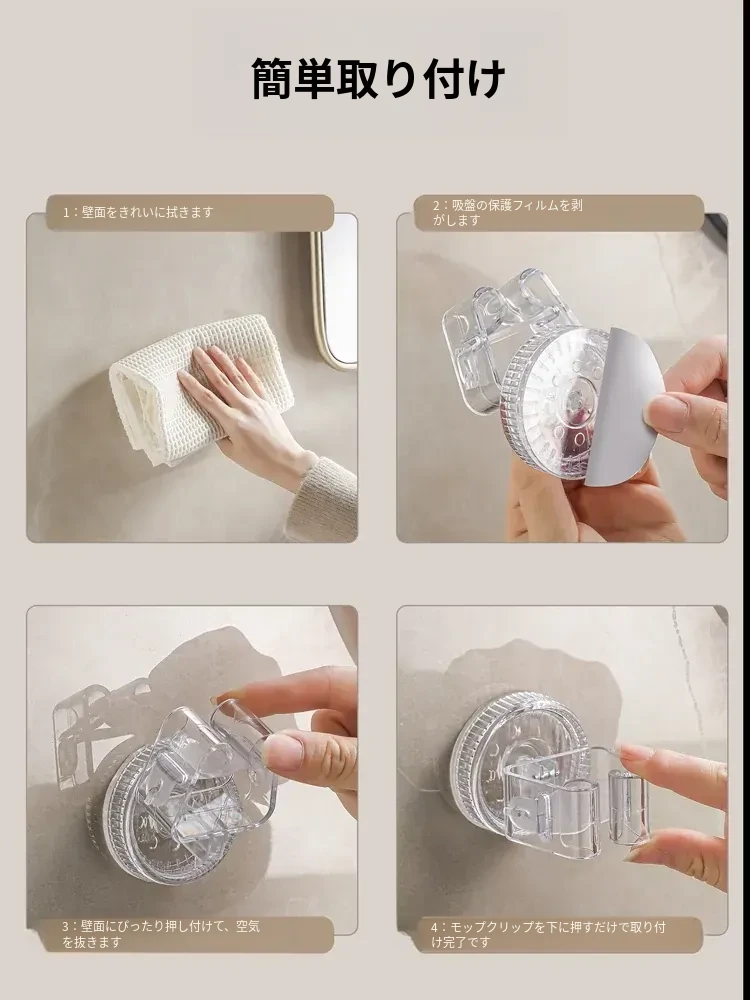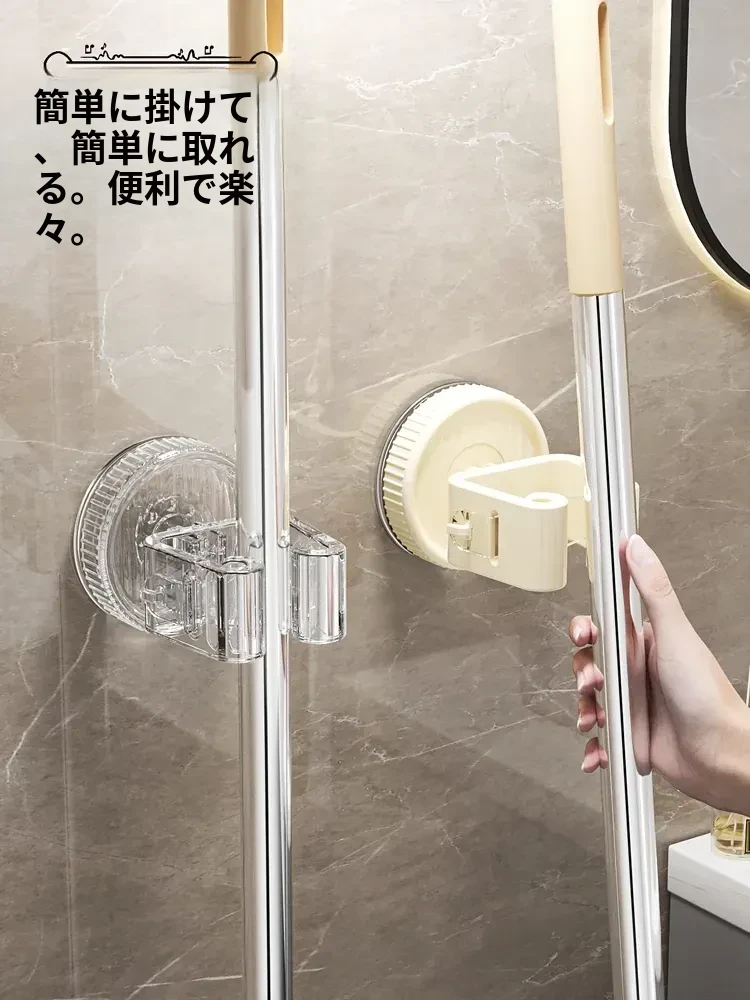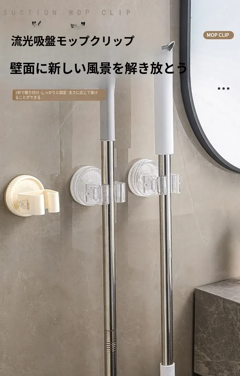吸盤モップ壁掛けクリップ|トイレ・バスルームに最適!穴を開けずに簡単装着!モップやほうきをしっかり固定できる収納ラックで、スッキリ整理整頓!
