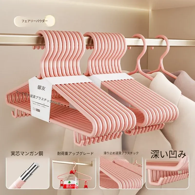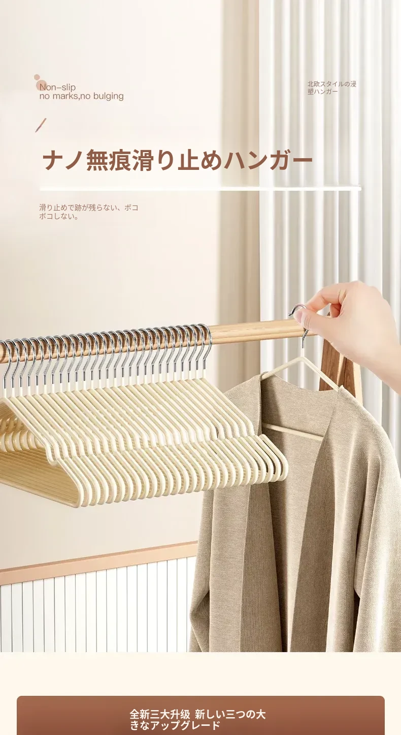 滑らない!肩のラインを守る!太くて頑丈な浸塑ハンガー - 家庭用、学生寮に最適!衣類をしっかりサポートし、無痕で美しく保つ、衣類収納の必需品!