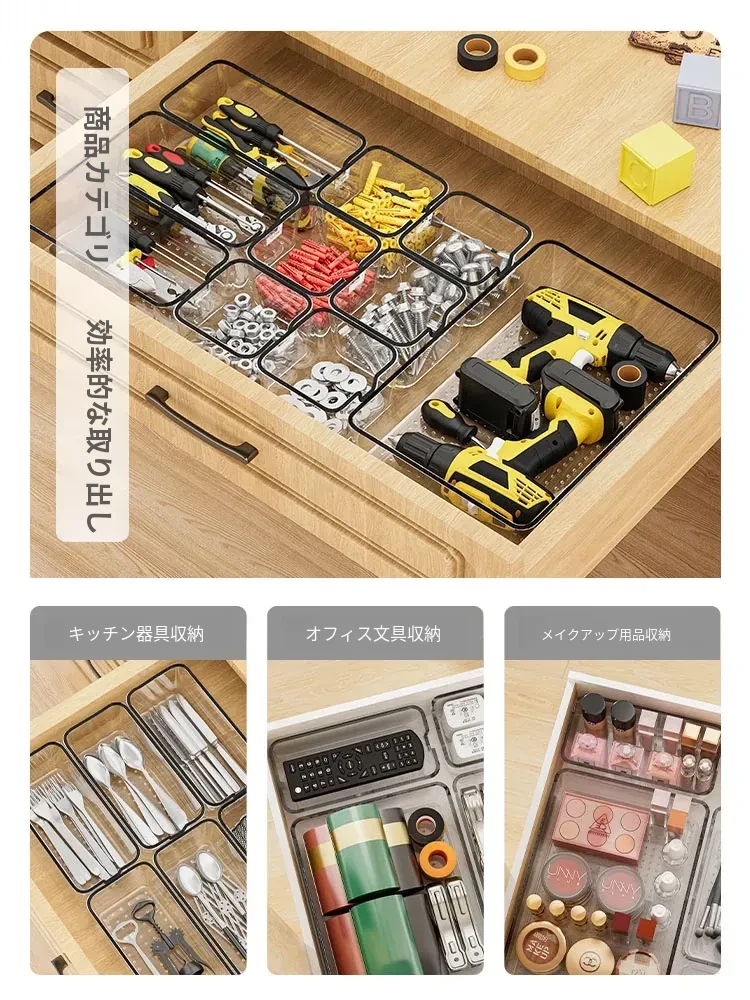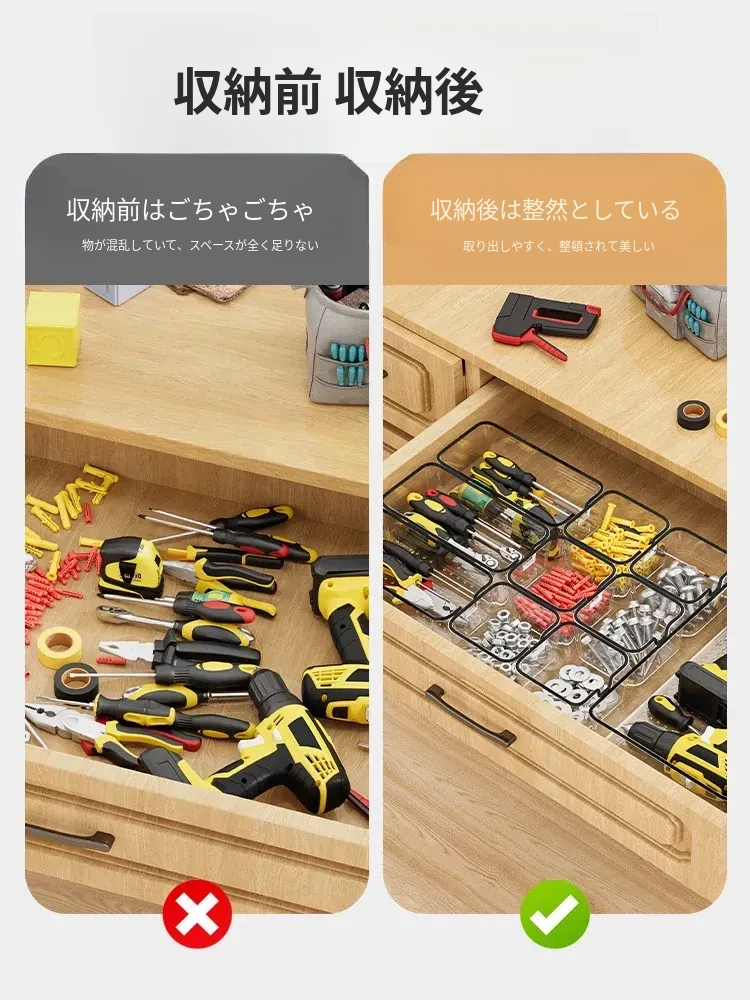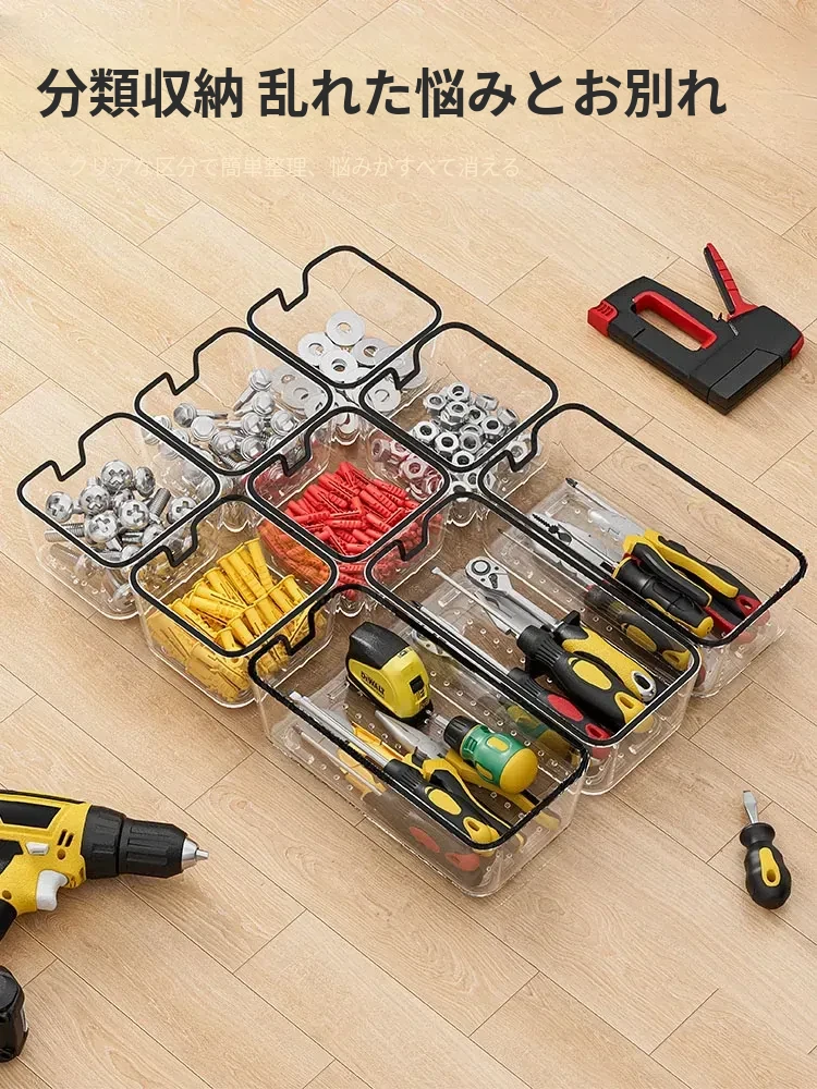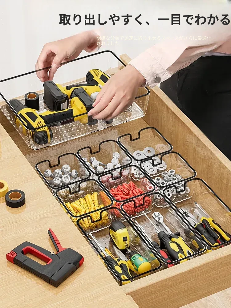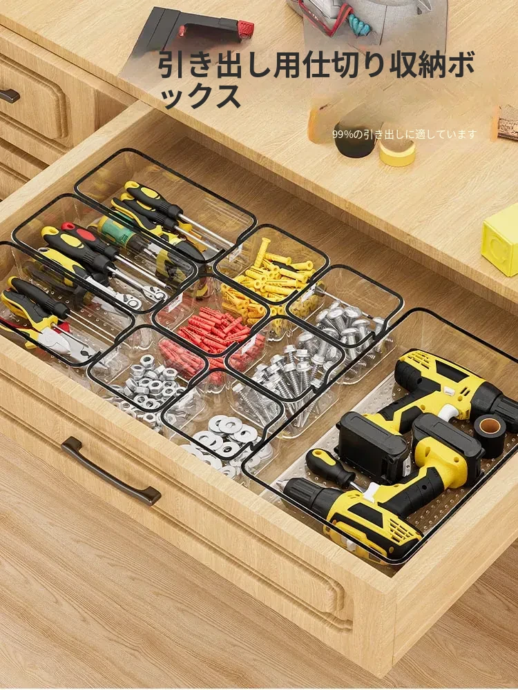透明アクリル仕切り付きの五金パーツ収納ボックス - デスク周りをスッキリ整理!引き出しタイプで工具や雑貨を効率的に分類・収納。あなたの作業スペースを美しく整えましょう!