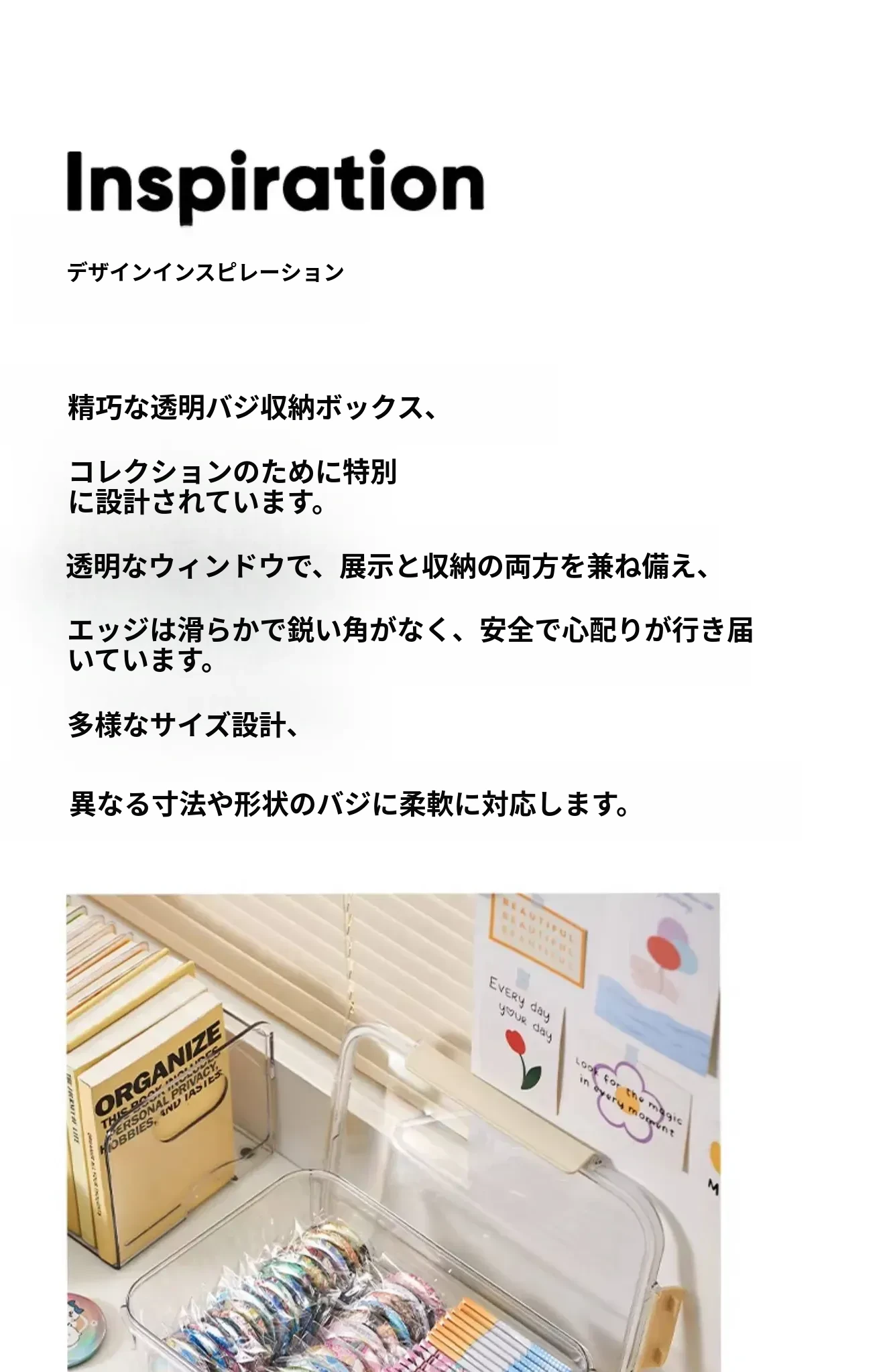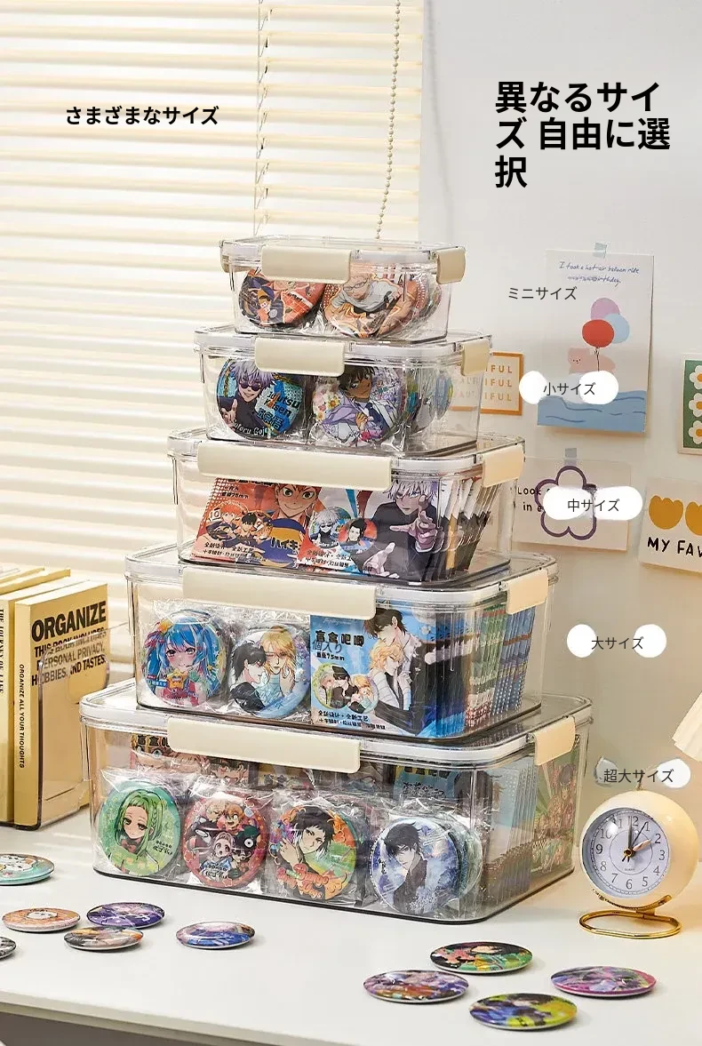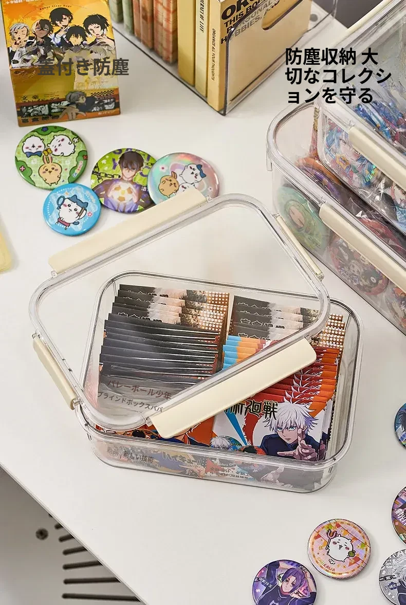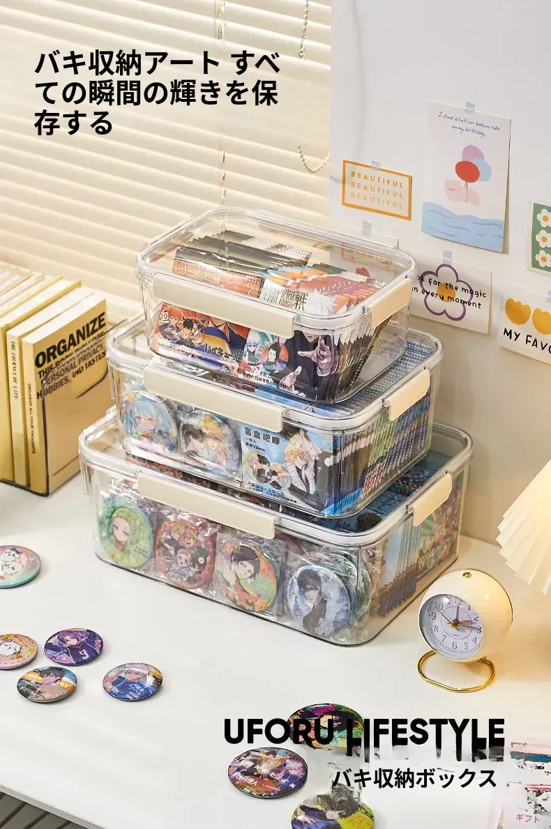透明アクリル製バッジ収納ボックス - 手帳周辺アイテムやバッジを美しく展示!防塵カバー付きで大切なコレクションを守ります。おしゃれで機能的な収納ソリューションです。