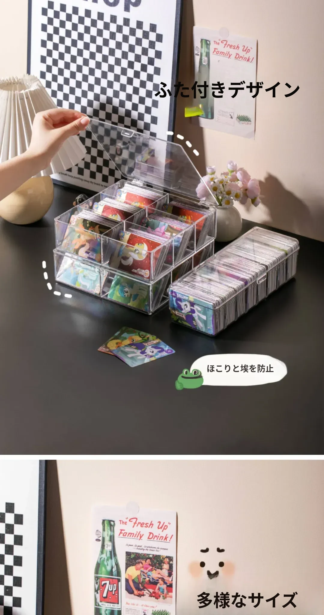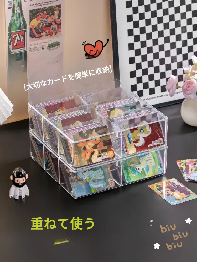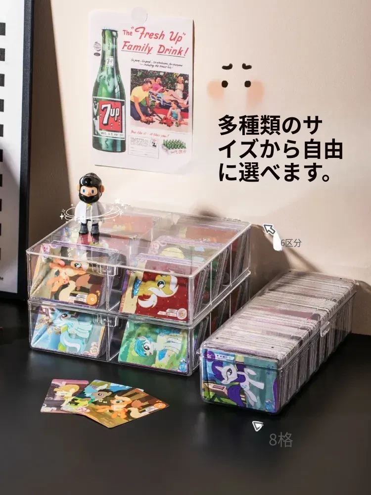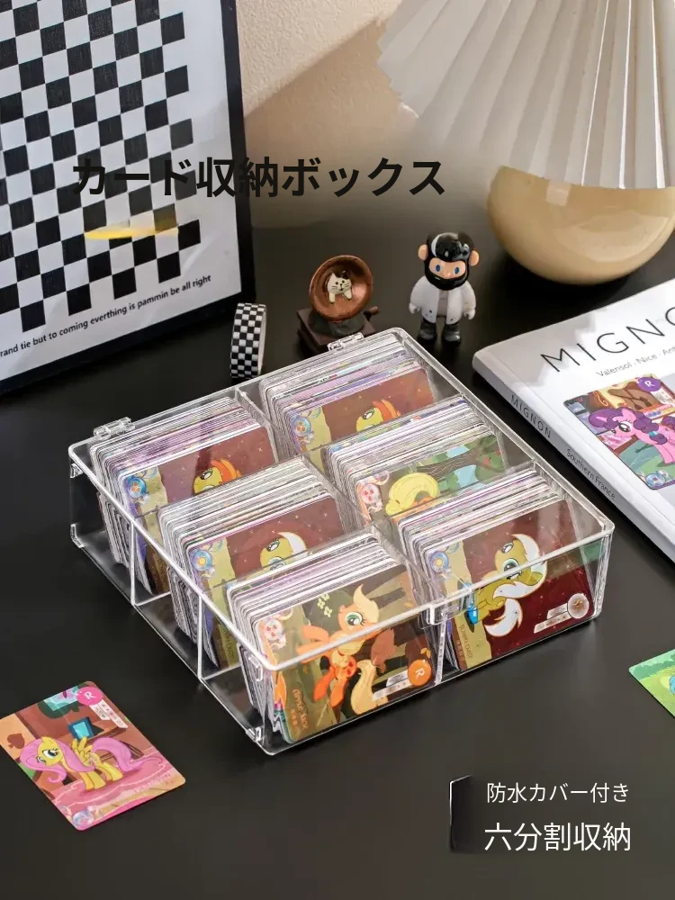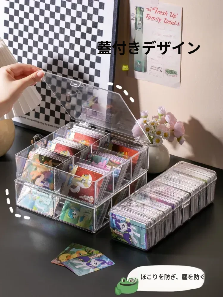 スタイリッシュな透明カードボックス - 大容量のフリップ式収納ケース!アイドルカードやトレーディングカードをすっきり整理、埃から守るカバー付き。デスク周りをおしゃれに整頓しよう!