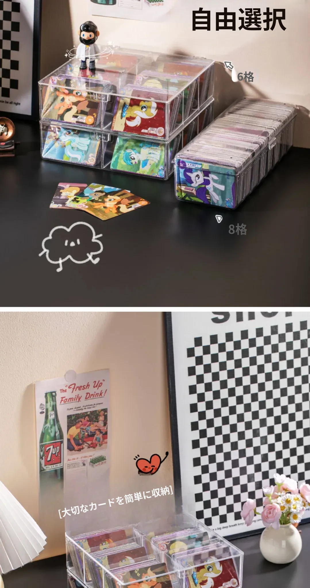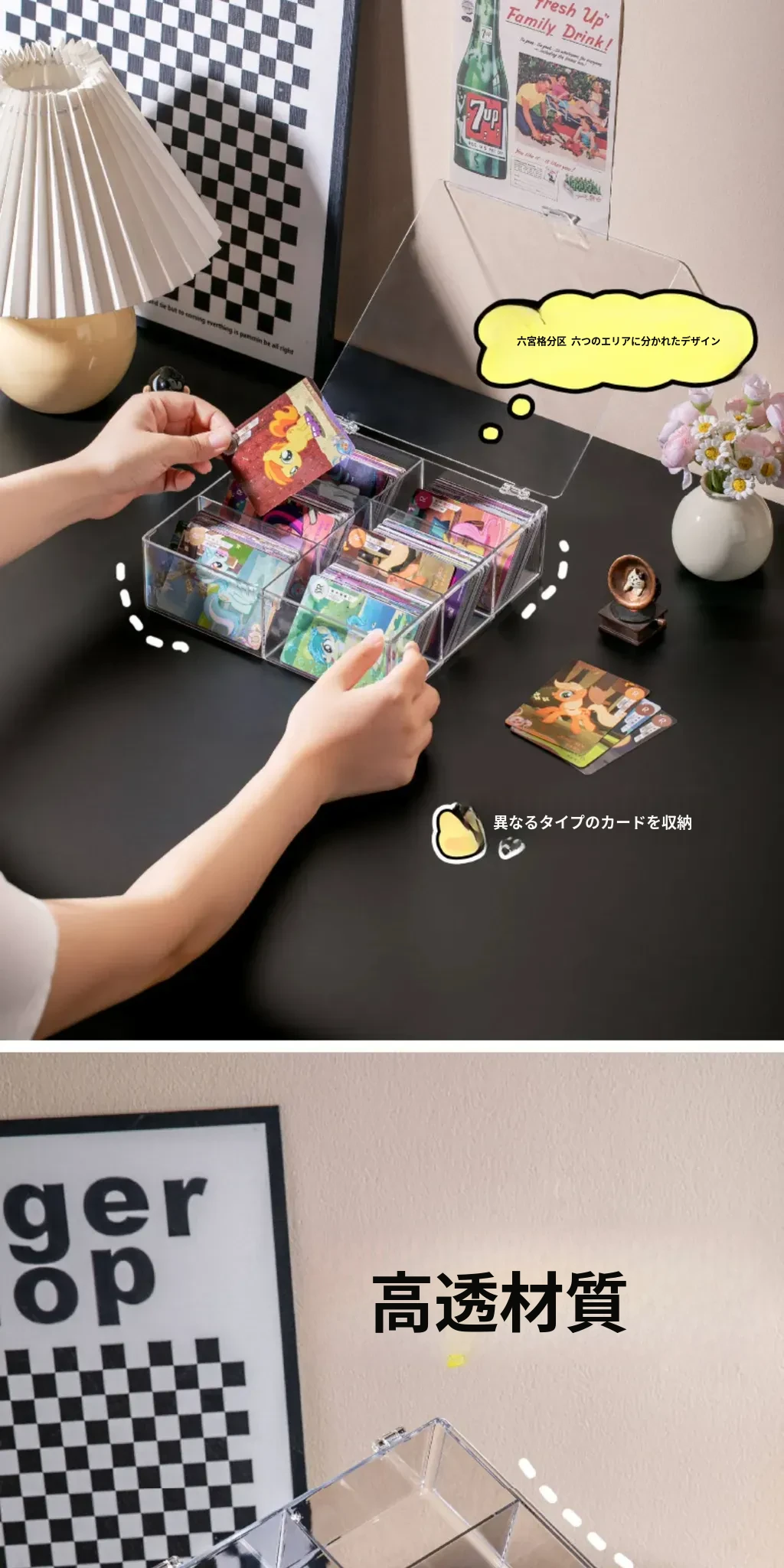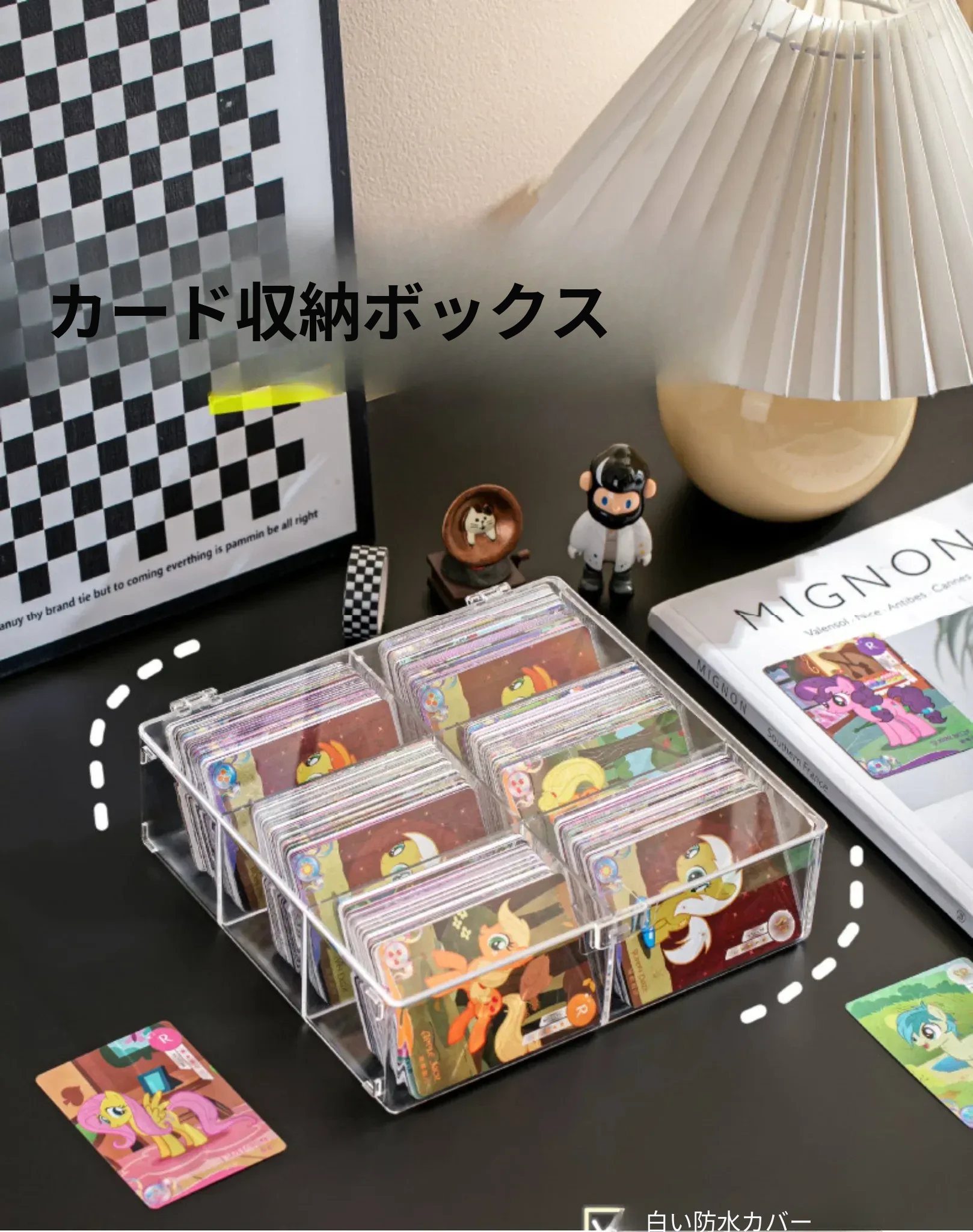 スタイリッシュな透明カードボックス - 大容量のフリップ式収納ケース!アイドルカードやトレーディングカードをすっきり整理、埃から守るカバー付き。デスク周りをおしゃれに整頓しよう!