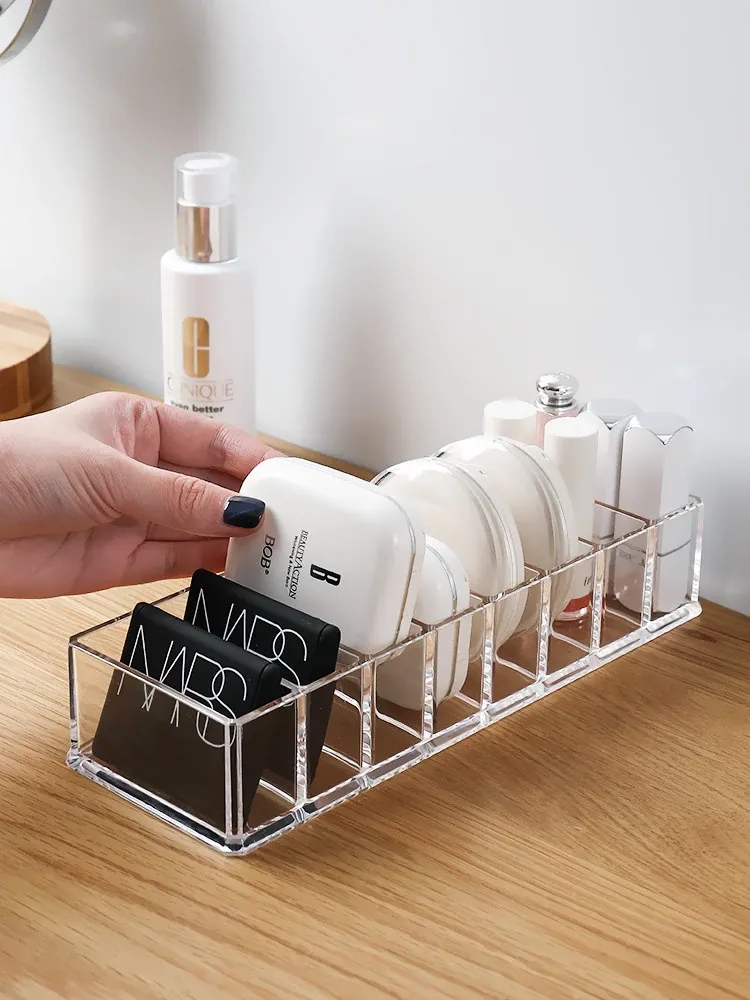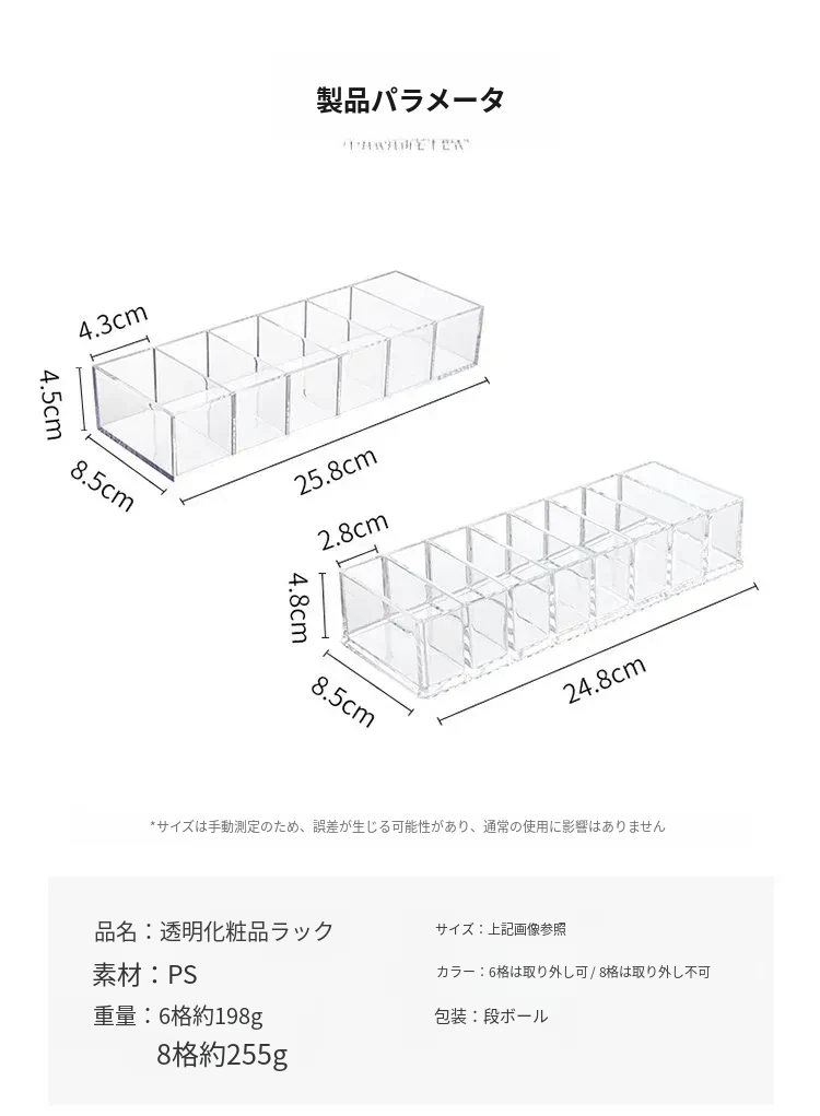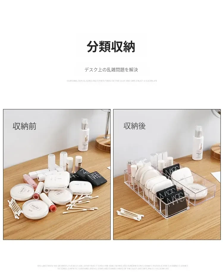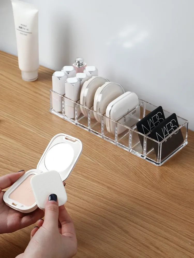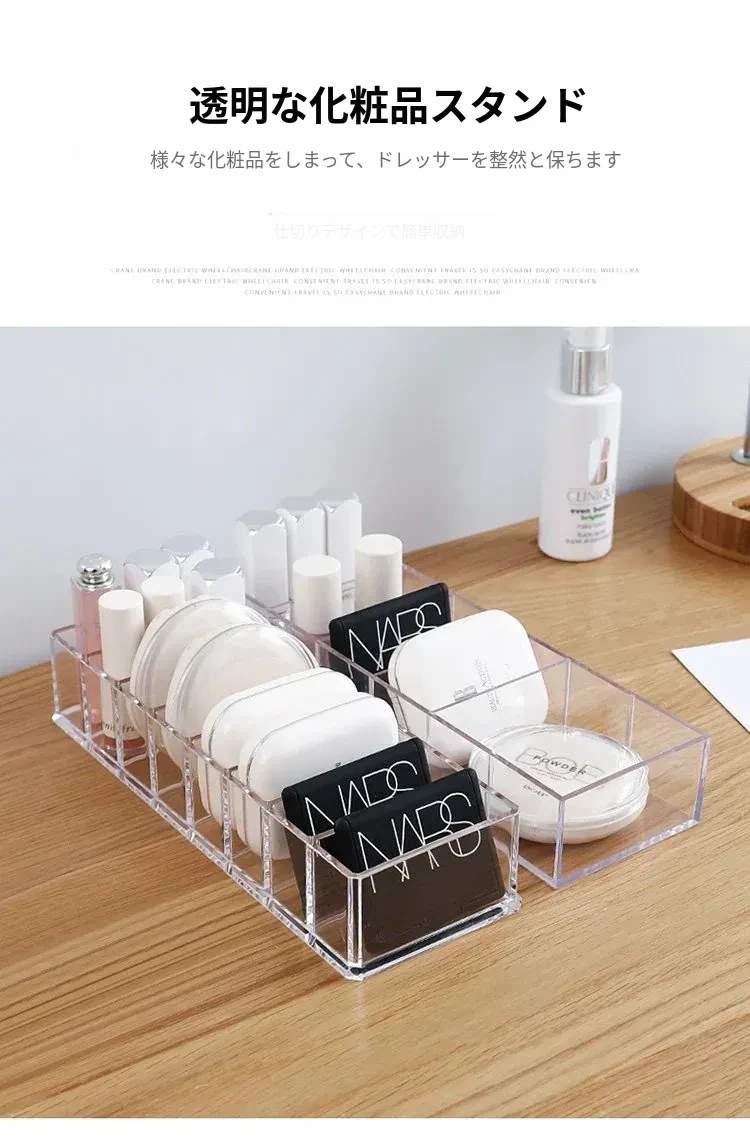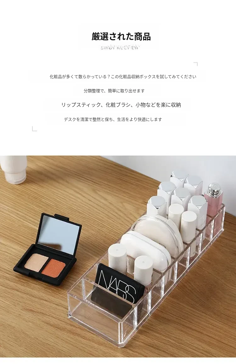 透明で分割可能なデスク用化粧品収納ボックス - 家庭用・学生寮向けのスキンケア用品やリップスティックを整理整頓!おしゃれで実用的なアイテム。