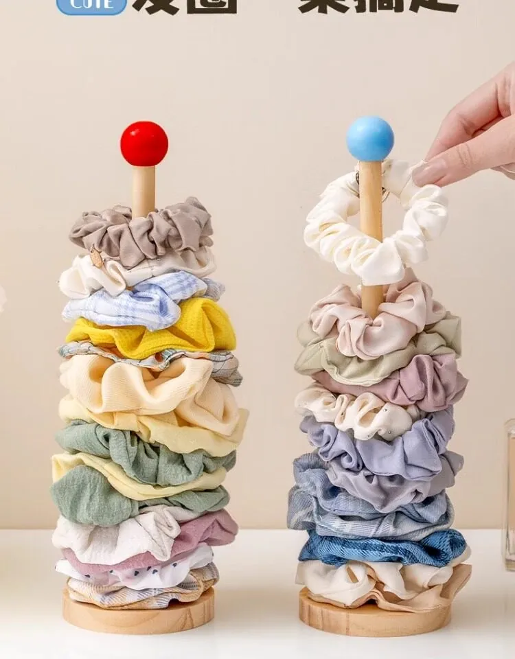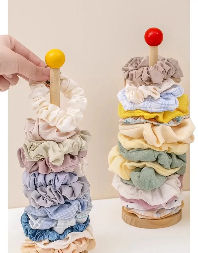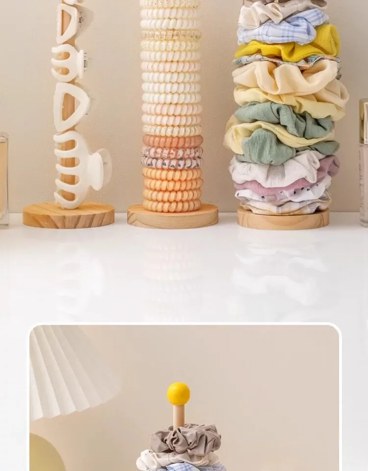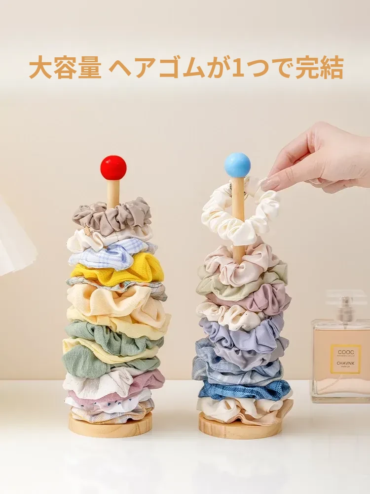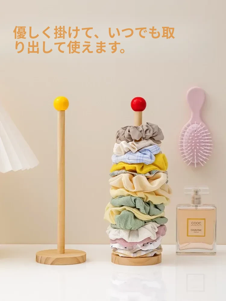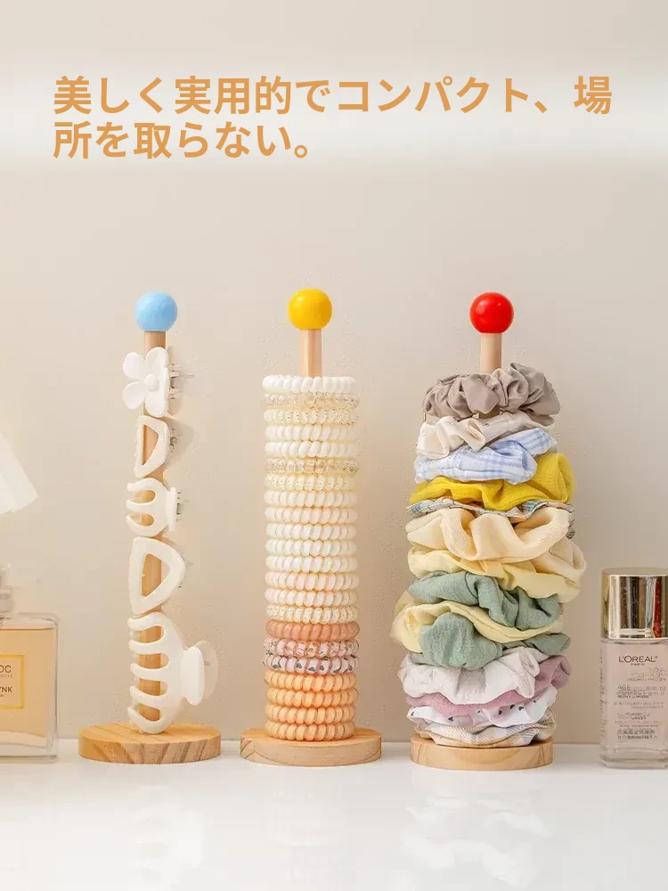 大腸ヘアゴム収納神器!おしゃれなヘアアクセサリーラック、ゴム・クリップ・花飾りをスッキリ整理。天然木製ディスプレイスタンドで、あなたのスタイルを引き立てる!