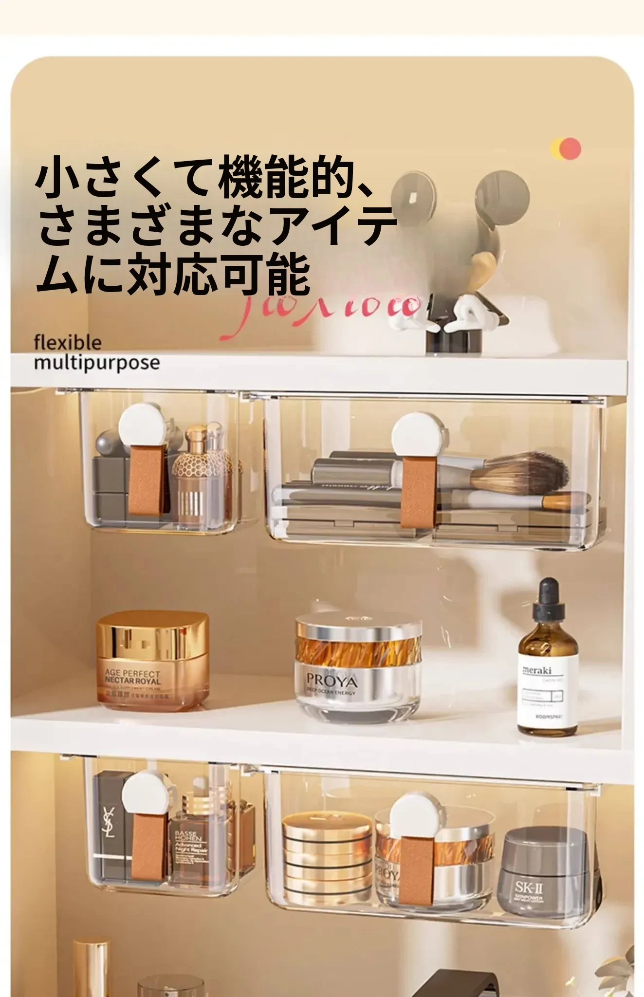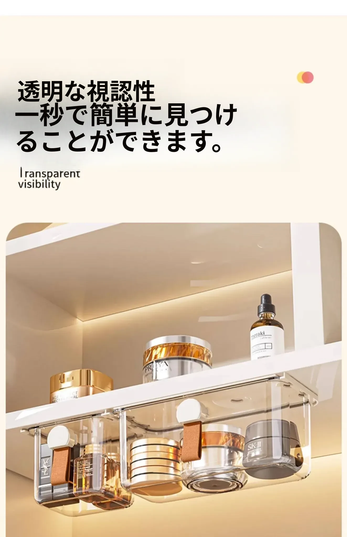 透明収納ボックス付きミラーキャビネット用引き出し式化粧品整理ボックス - メイク落とし用コットンやリップ、綿棒をスッキリ収納!おしゃれなバスルームの必需品!