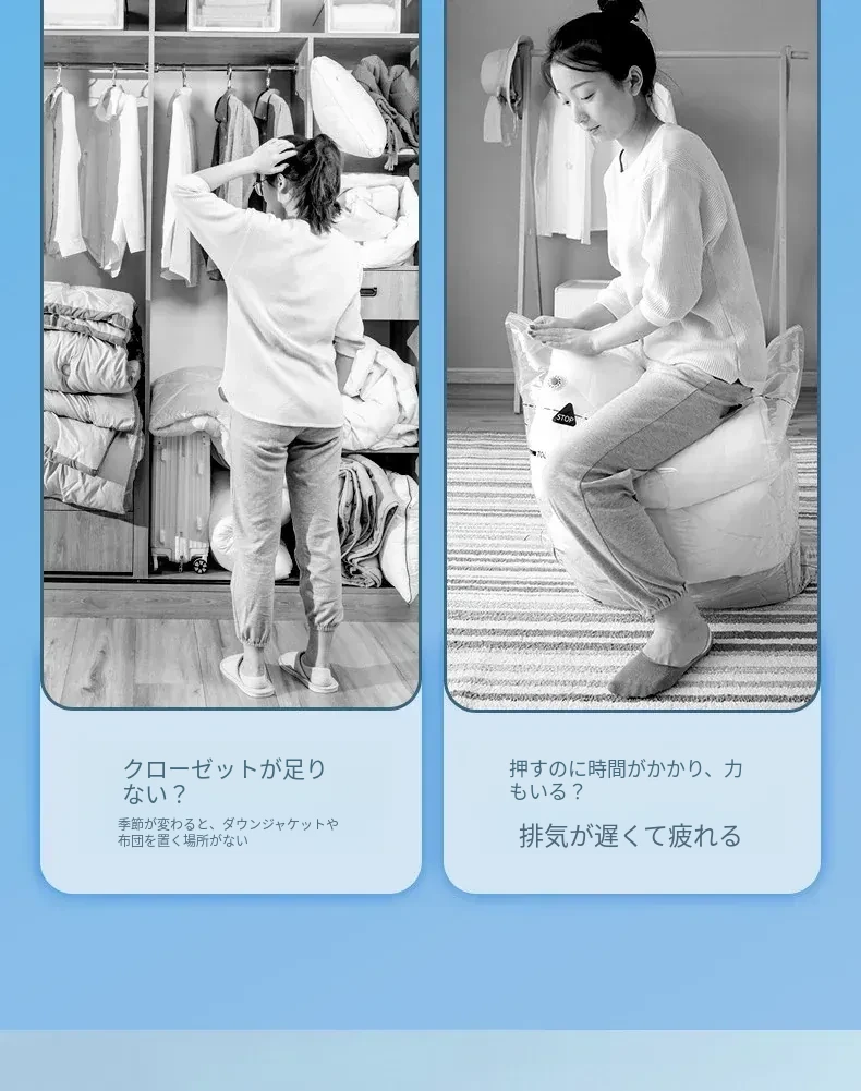 真空圧縮袋 - 布団や衣類をスッキリ整理!省スペースで大容量、衣類も毛布も簡単に収納できるお家の必需品。密封効果で湿気や虫から守ります!