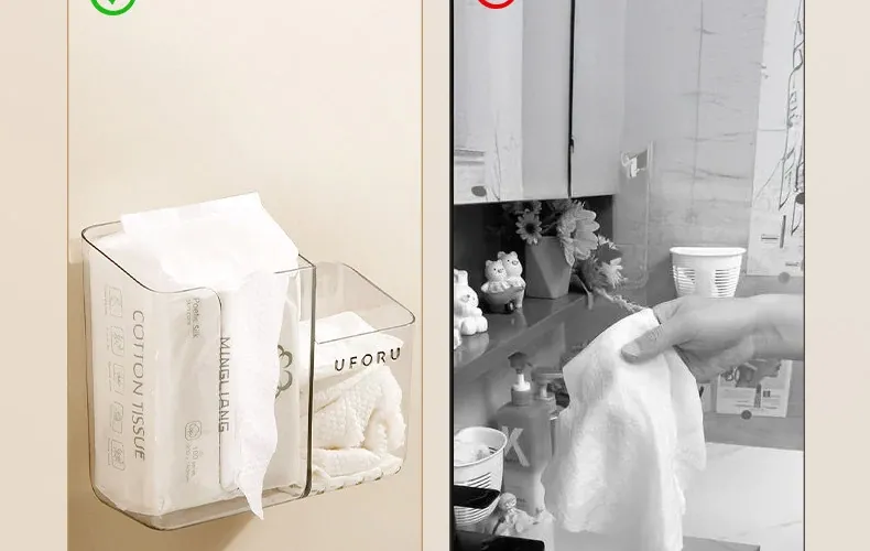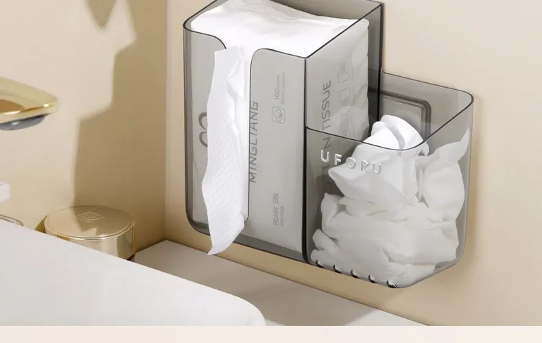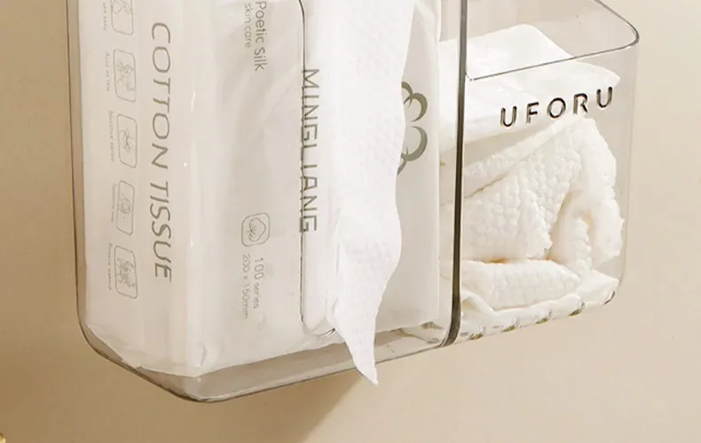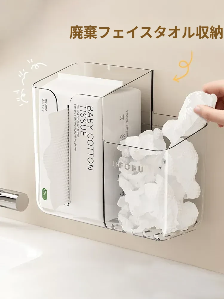 使い捨てフェイスタオル収納ボックス 壁掛けタイプ 二次利用可能なバスルーム収納ラック ウェットティッシュボックスとしても使える!清潔で便利なアイテムで、おしゃれなバスルームを実現!